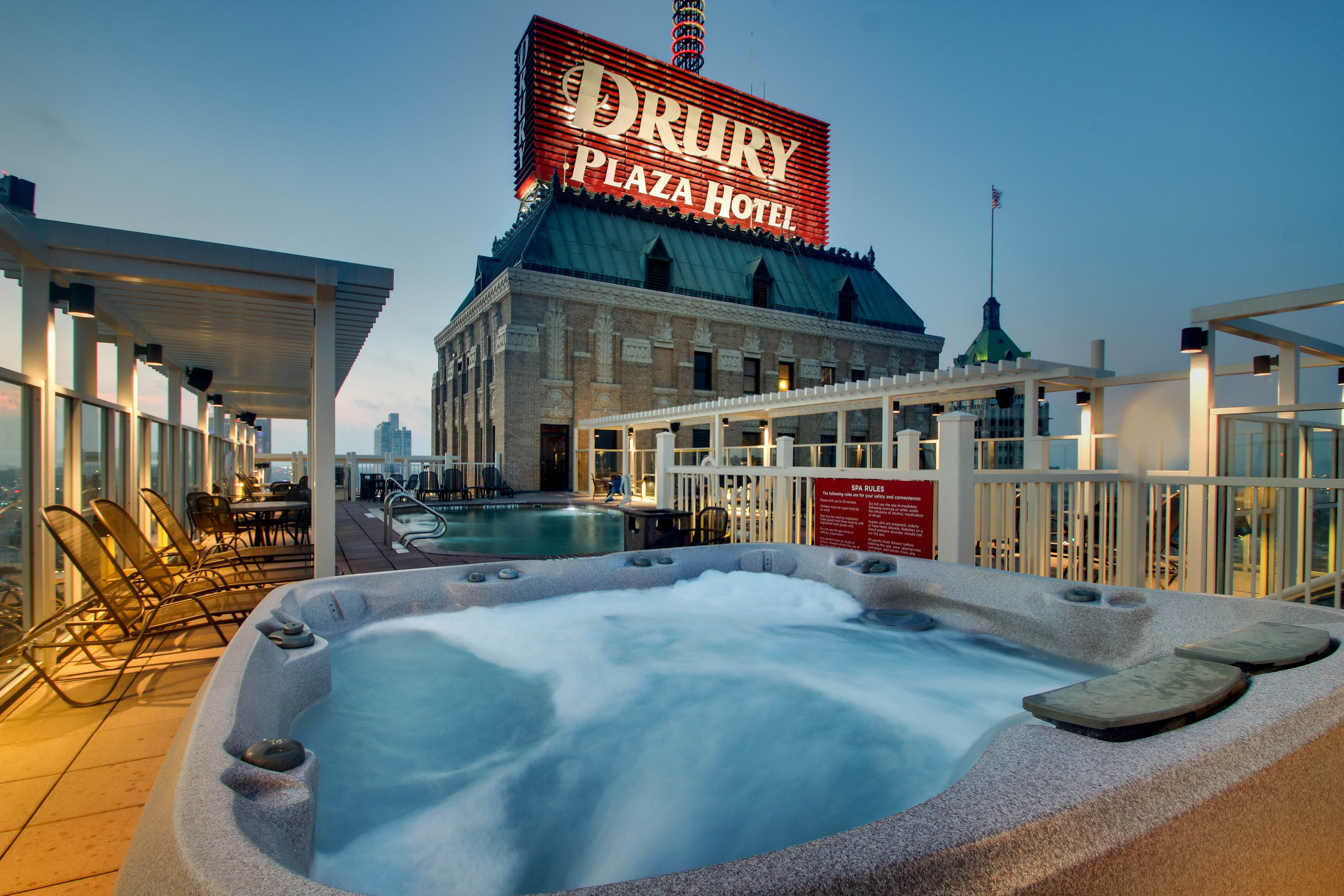 In 2007, the Alamo National Bank Building opened as Drury Plaza Hotel San Antonio Riverwalk. This building has always been one of the tallest buildings in downtown San Antonio. In the renovation, the rooftop was converted into a pool and observation deck with 360-degree views of the city. Larger spaces were converted into premium suites, and a former lounge on the fourth floor has been converted into a ballroom with a balcony for private events.