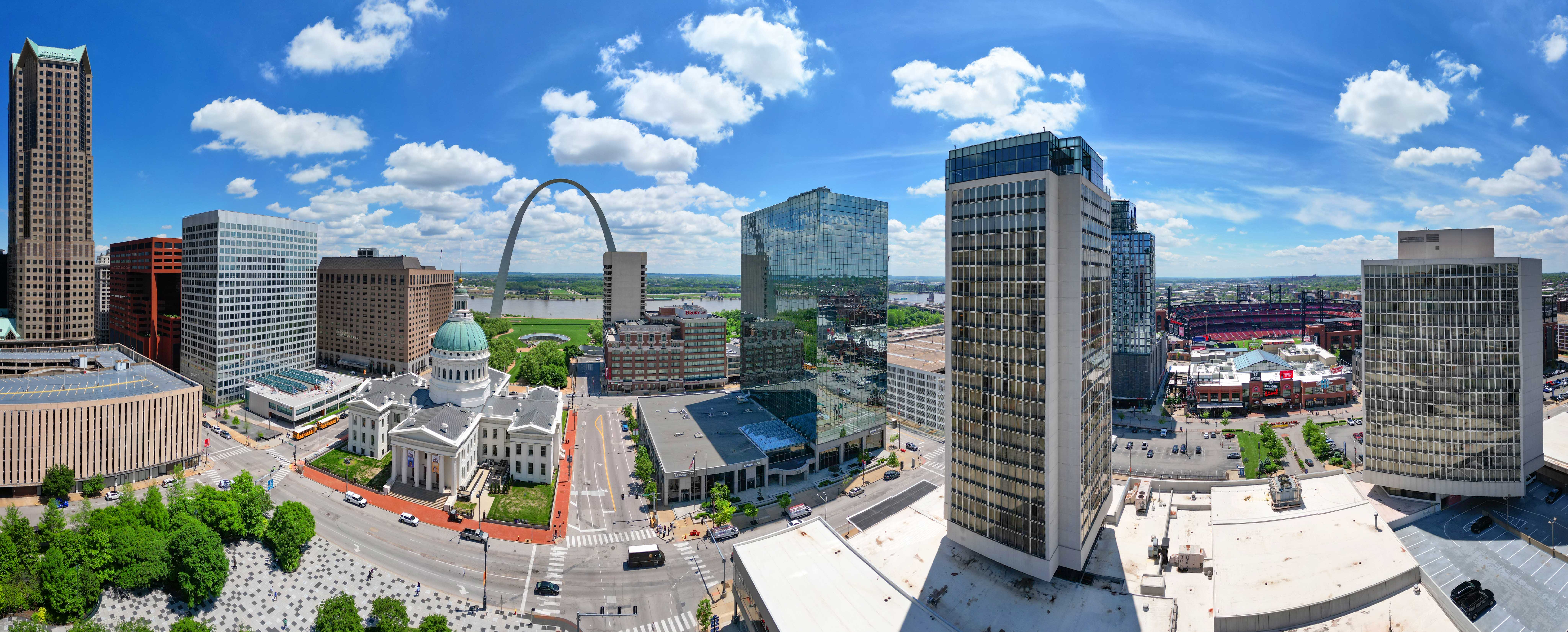 The Drury Plaza Hotel at the Arch sits in an entire square block of downtown St. Louis: between 4th Street and Memorial Drive, Market Street and Walnut Street. It’s only blocks from the Mississippi riverfront and the Gateway Arch. In the early 1900s, this area was professional office space and industrial or manufacturing warehouses. Today, this commercial area blends new construction with historic buildings that date back to the 19th century.