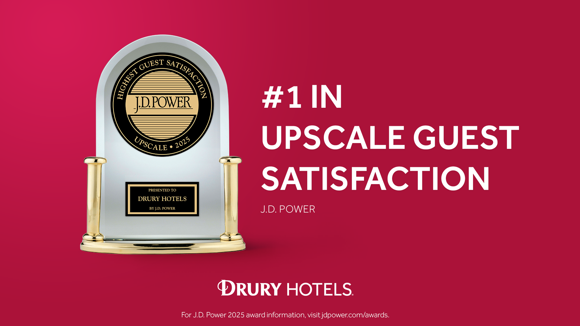 We are truly honored to be ranked the highest in guest satisfaction among upscale hotel chains by J.D. Power, who surveyed 39,219 hotel guests on seven categories, including food and beverage, guest room, hotel facility, hotel connectivity, hotel staff, value for prices paid, and check-in/check-out. Drury Hotels ranked the highest in all categories – proof of our unwavering commitment to exceptional service from check-in to check-out.