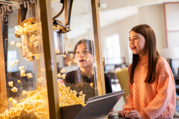 What's that delicious smell in the lobby? Freshly popped popcorn!